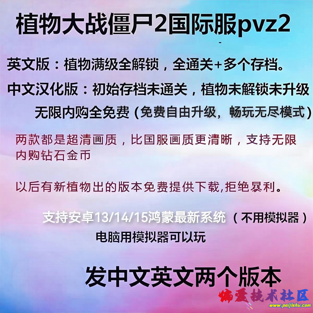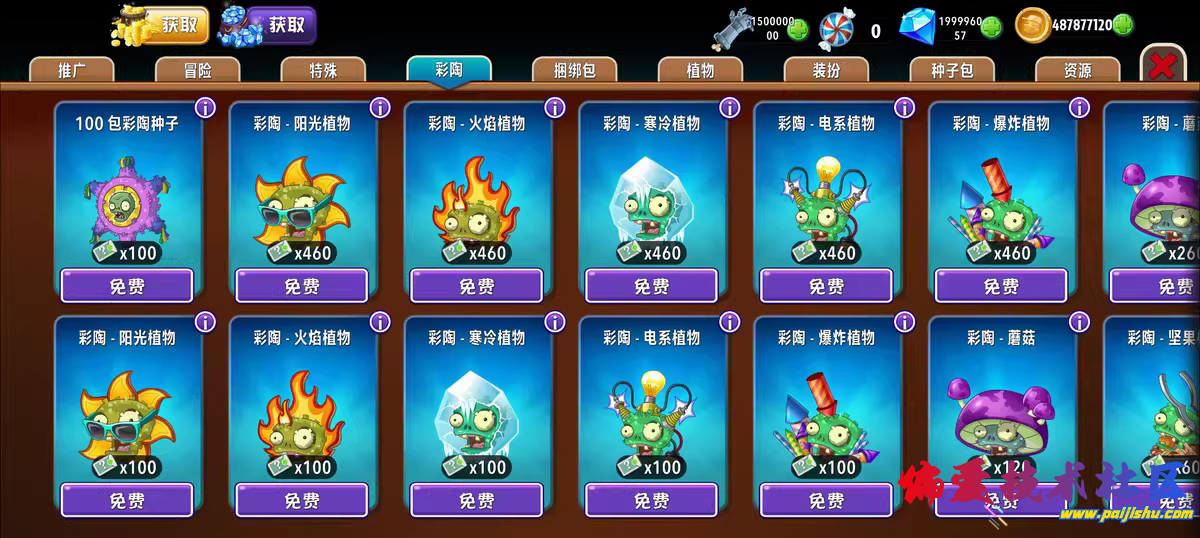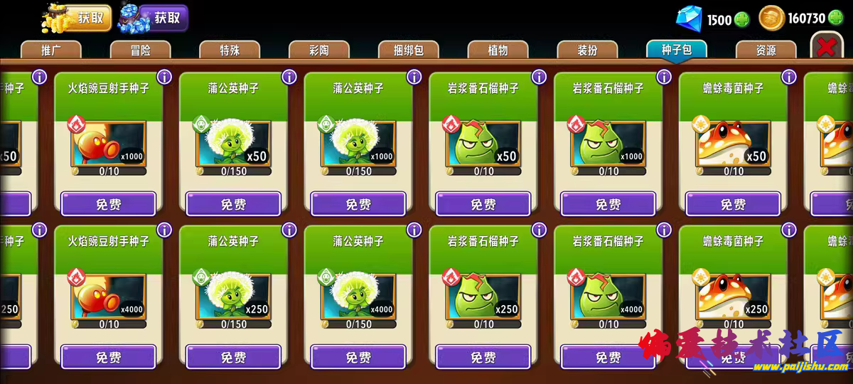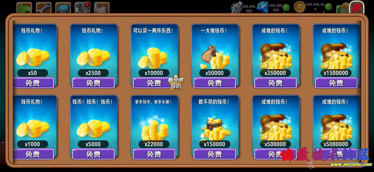 在植物大战僵尸2国际服的基础上,让金币、钻石、植物等可以免/费获取升级