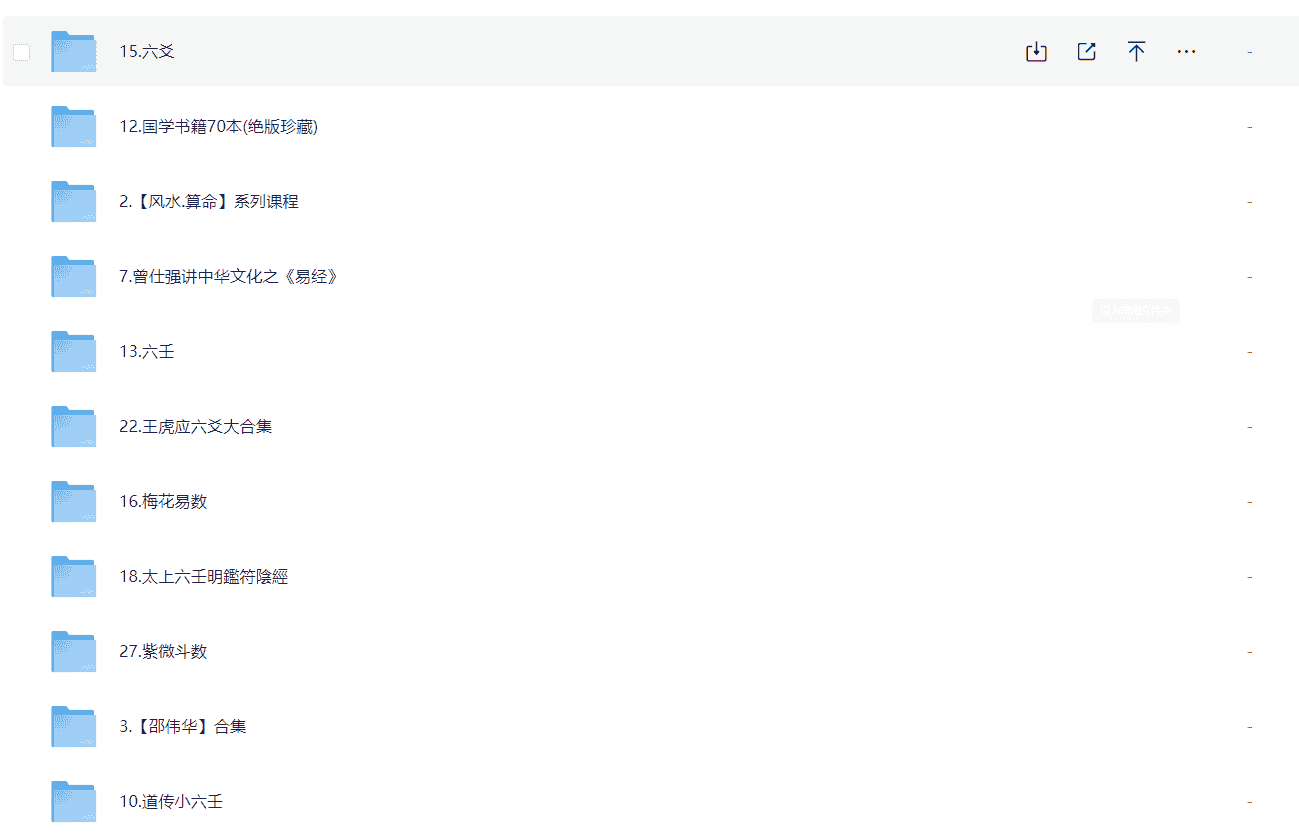 最新精整风水玄学专题课程资料合集,包含多个系列和专题,如风水算命系列课程、邵伟华合集、《易经研究系列著作合集》、六壬、六壬军帐神机、六爻、曾仕强《曾仕强易经的智慧全集》等